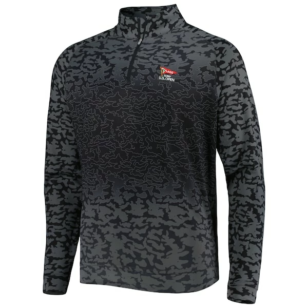 Men’s 2023 U.S. Open Peter Millar Black Perth Camo Performance Quarter-Zip Raglan Sweatshirt