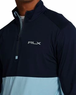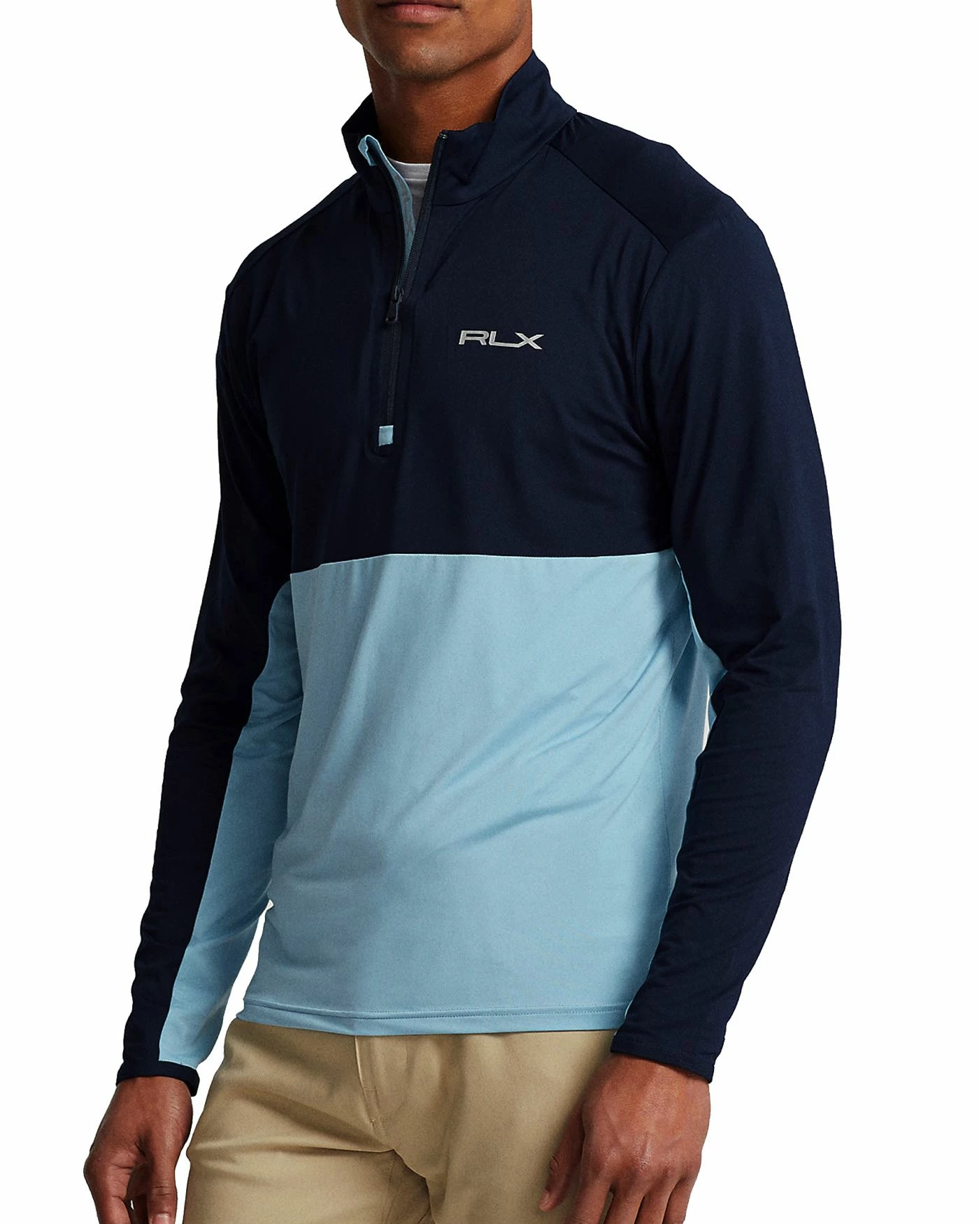 “RLX” embroidered and printed on the storm placket, the left chest and the back of the neck.