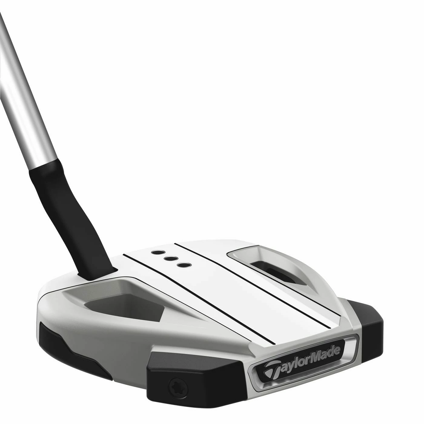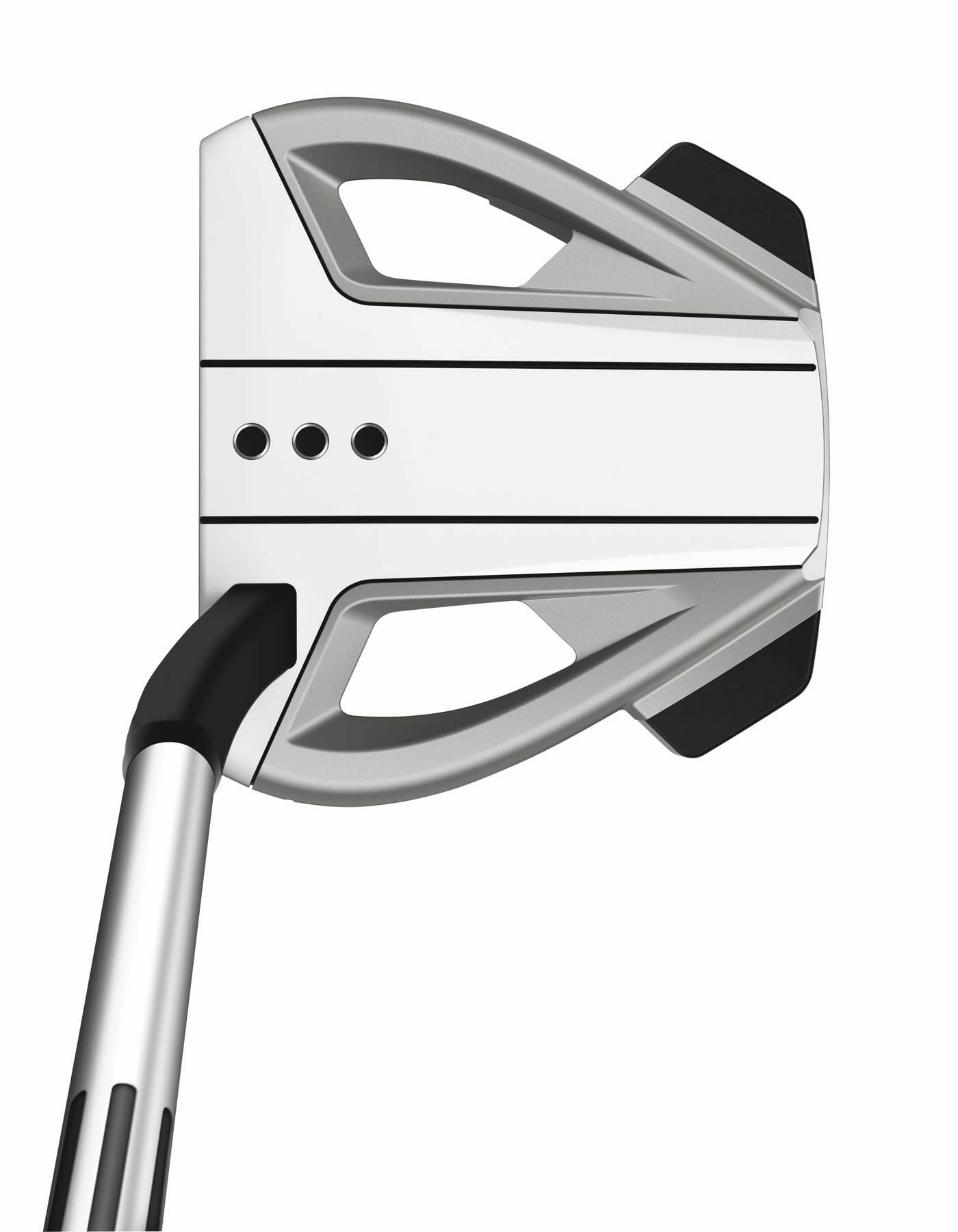 The science of white. White is the most reflective color, which allows the human eye to clearly see the path of the stroke. The new shape is designed to allow golfers to use the front of the face for alignment and the two rails to center the golf ball. Three strategically positioned dots deliver a premium aesthetic and functional aiming tool.