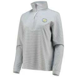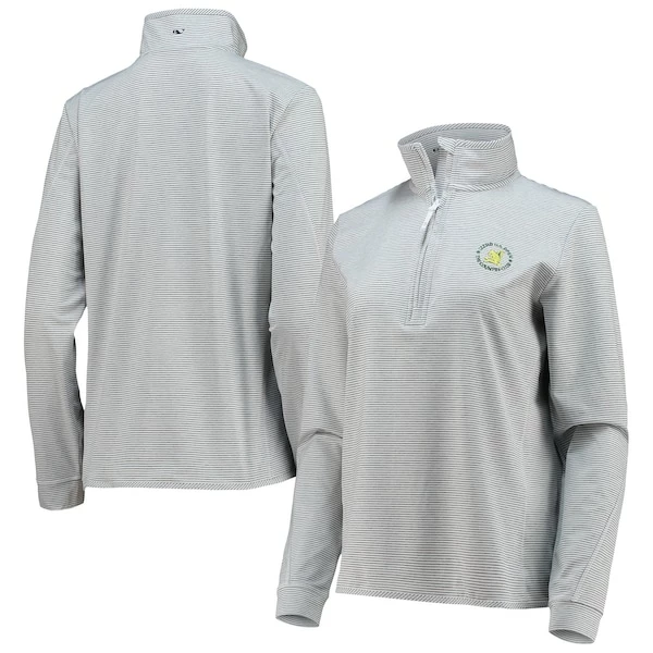 Women’s 2022 U.S. Open Vineyard Vines Heather Gray Striped Sankaty Shep Shirt Half-Zip Top