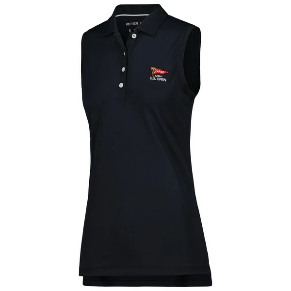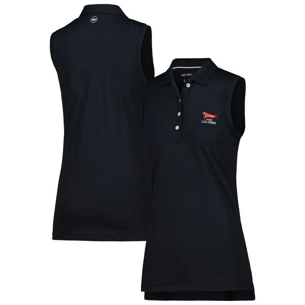 Women’s 2023 U.S. Open Peter Millar Black Banded Sport Mesh Button Sleeveless Polo